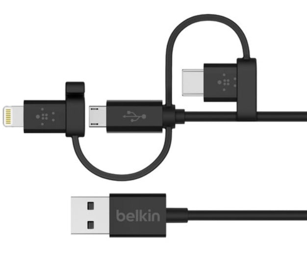 Le câble universel USB Type-A vers Micro-USB mâle avec adaptateurs USB Type-C et Lightning de Belkin est un câble de charge et de synchronisation avec des connecteurs multipoints pour vos appareils mobiles. Il dispose d'un connecteur micro-USB standard avec des adaptateurs USB Type-C et Lightning, qui vous permet de charger des iPhones, des appareils Android et d'autres appareils alimentés par USB. Les crochets de gestion des câbles intégrés de Belkin aident à garder les connecteurs de câbles organisés. Ce câble de 4' est certifié MFi, offrant une charge optimale pour les appareils Apple.