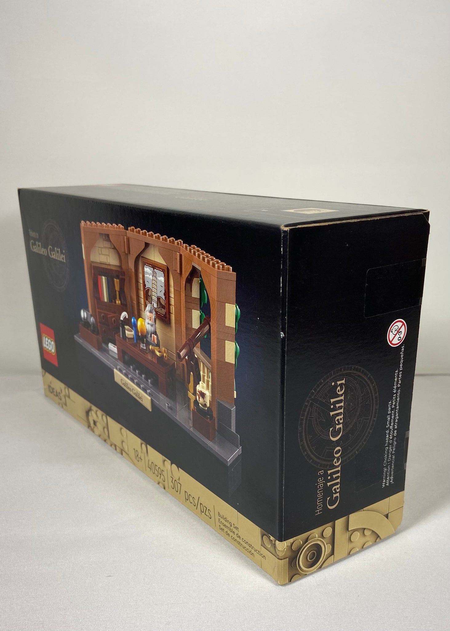 Ensemble LEGO Ideas Tribute to Galileo Galilei (#40595), une scène détaillée rendant hommage au célèbre astronome. Comprend la minifigurine de Galilée, son bureau, des instruments scientifiques, un télescope, des livres et une mise en scène historique très fidèle.
