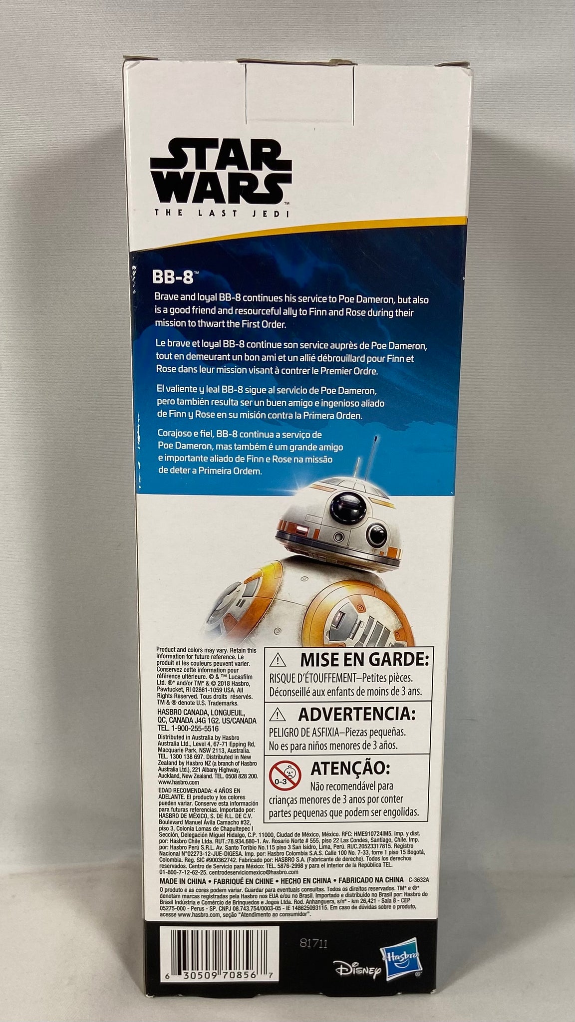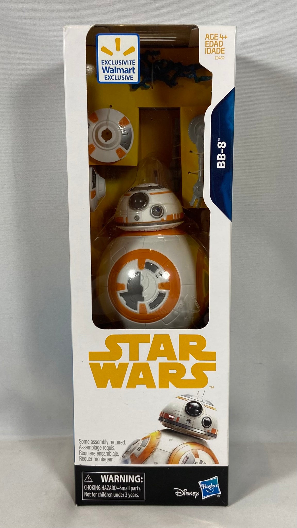 Figurine officielle BB-8 de Star Wars: The Last Jedi, version exclusivité Walmart, présentée dans sa boîte d’origine. Un article recherché par les collectionneurs et idéal pour l’exposition.