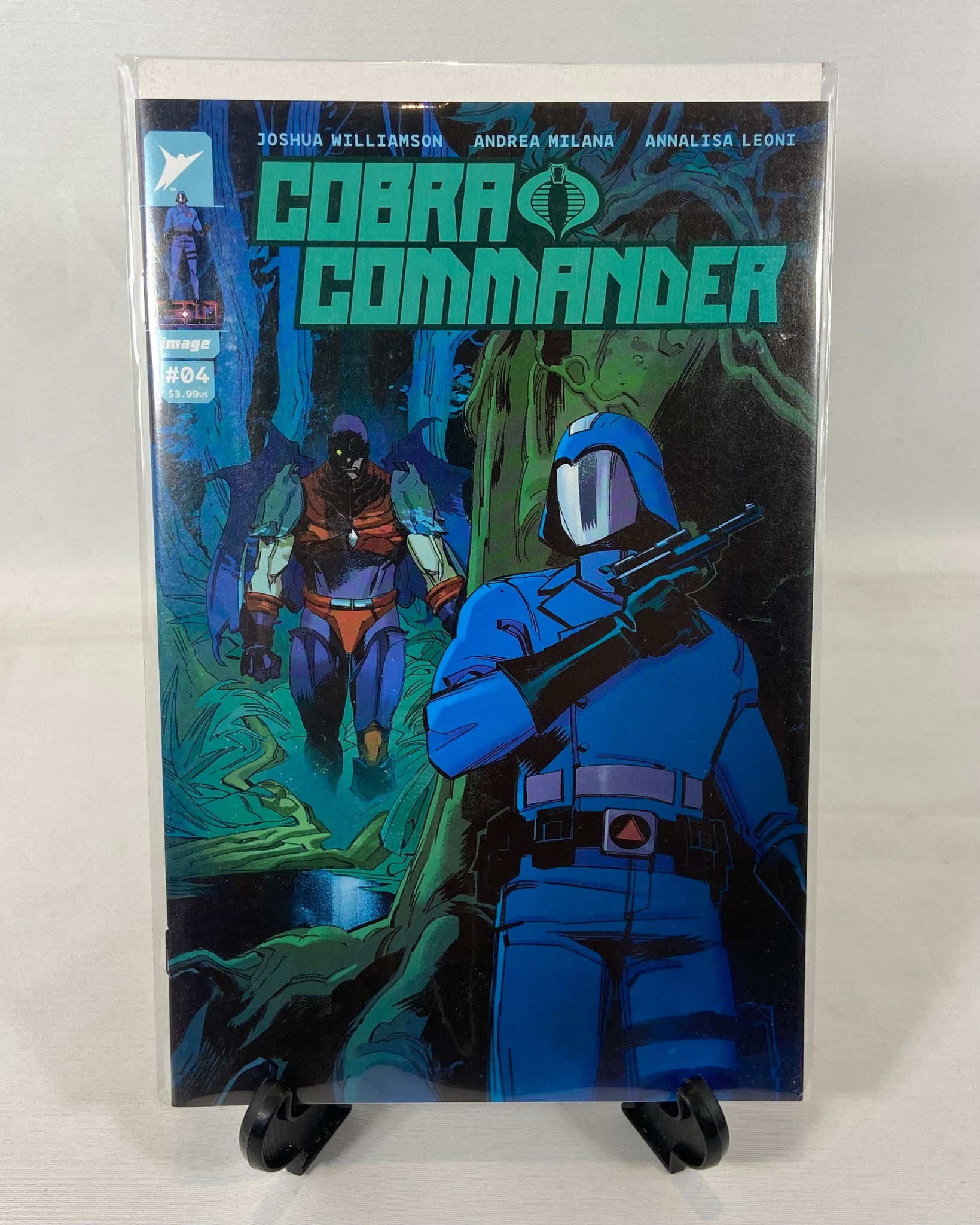 Quatrième numéro de la série Cobra Commander publiée par Image Comics, dans l’univers G.I. Joe. Cet épisode poursuit l’arc narratif centré sur l’ascension du personnage emblématique Cobra Commander, avec une direction artistique moderne et une ambiance plus mature.