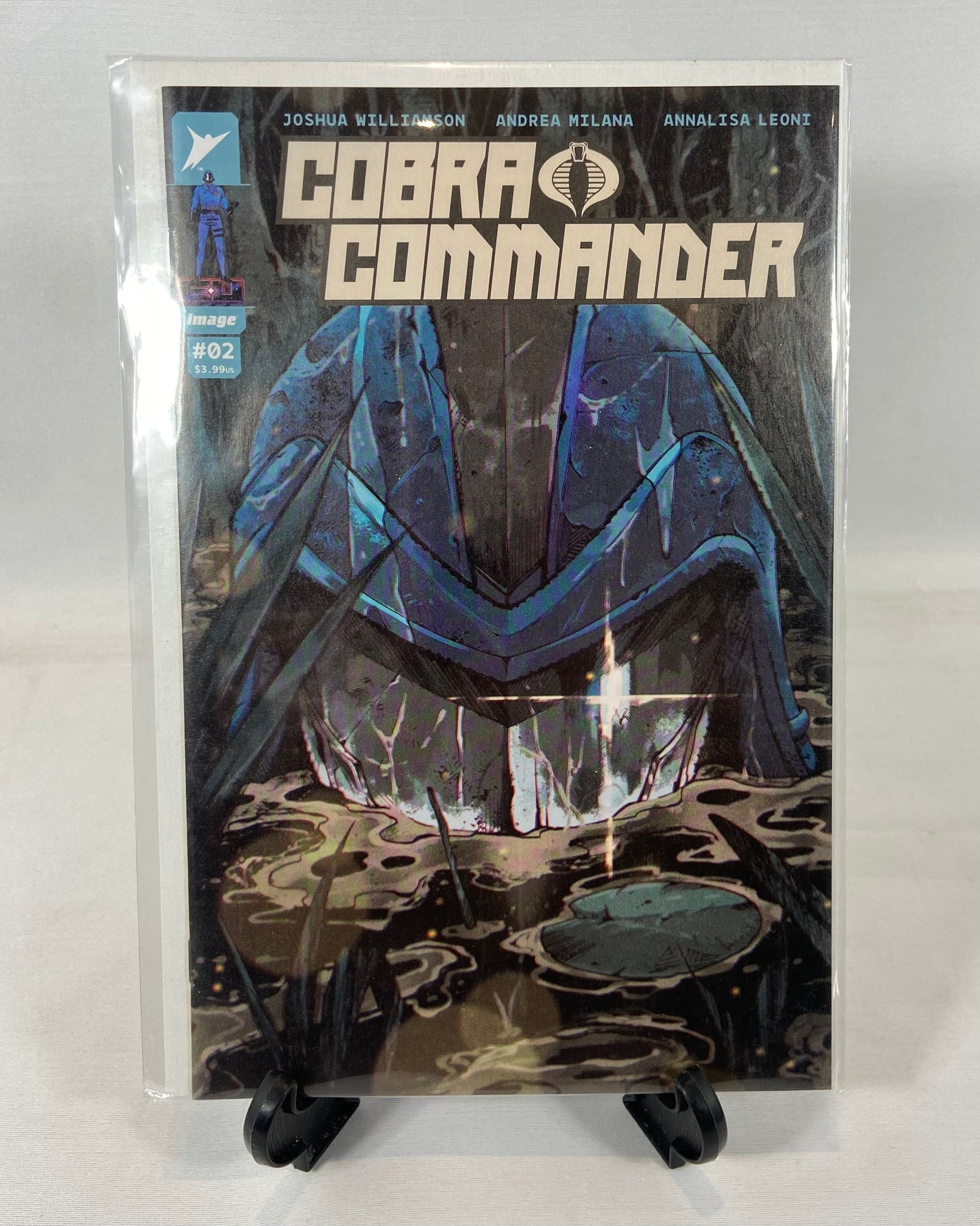 Exemplaire conservé avec soin, exposé uniquement, jamais lu, et rangé dans un sac protecteur avec carton de soutien. Idéal pour collectionneur ou amateur de comics G.I. Joe / Image Comics.