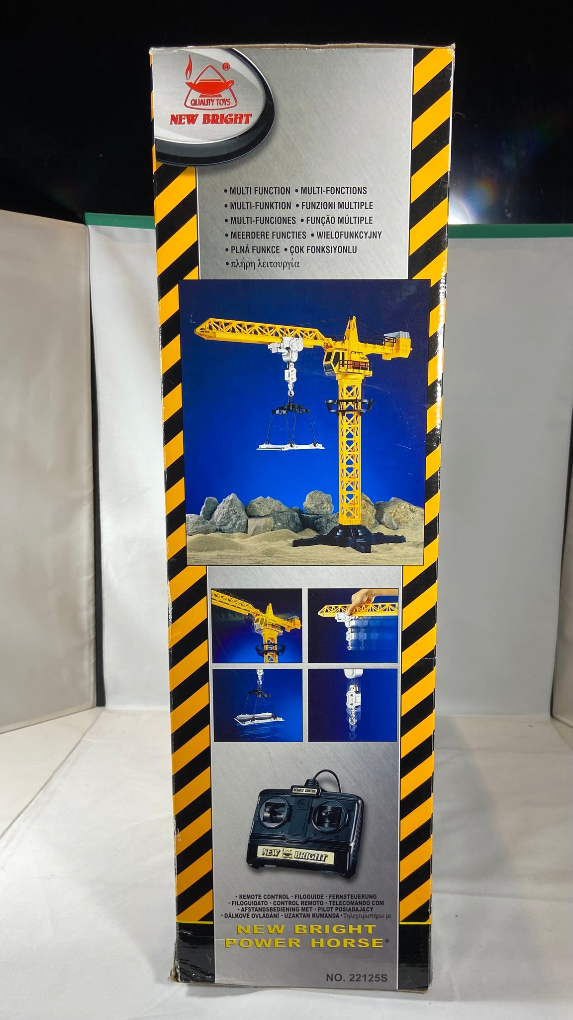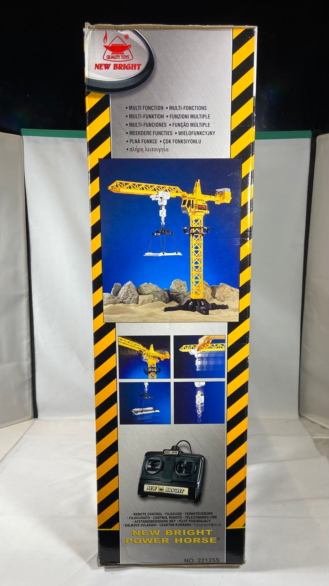 Also available for English customers – Brand new New Bright Power Horse remote control construction crane, never used. Fast shipping in Quebec.
