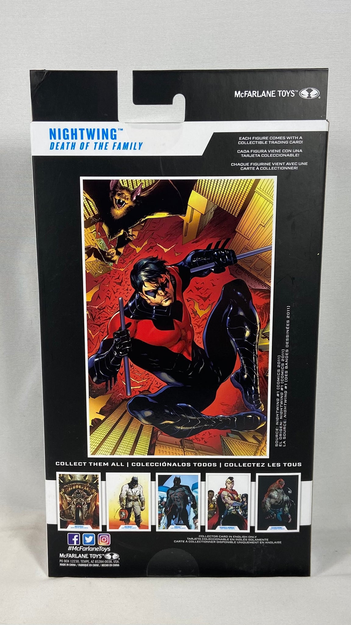 Figurine officielle Nightwing issue de la série DC Multiverse, modèle Death of the Family par McFarlane Toys. Figurine articulée dans son emballage d’origine, représentant Nightwing avec bâtons de combat. Un incontournable pour collectionneurs DC Comics ou fans de super-héros.