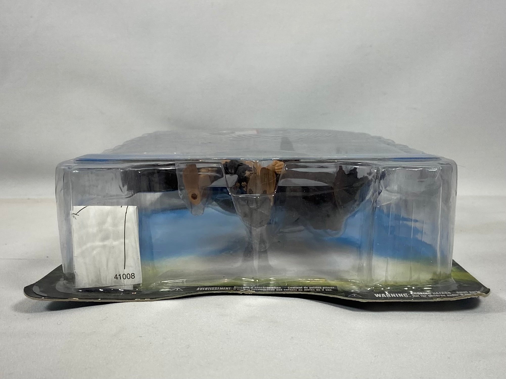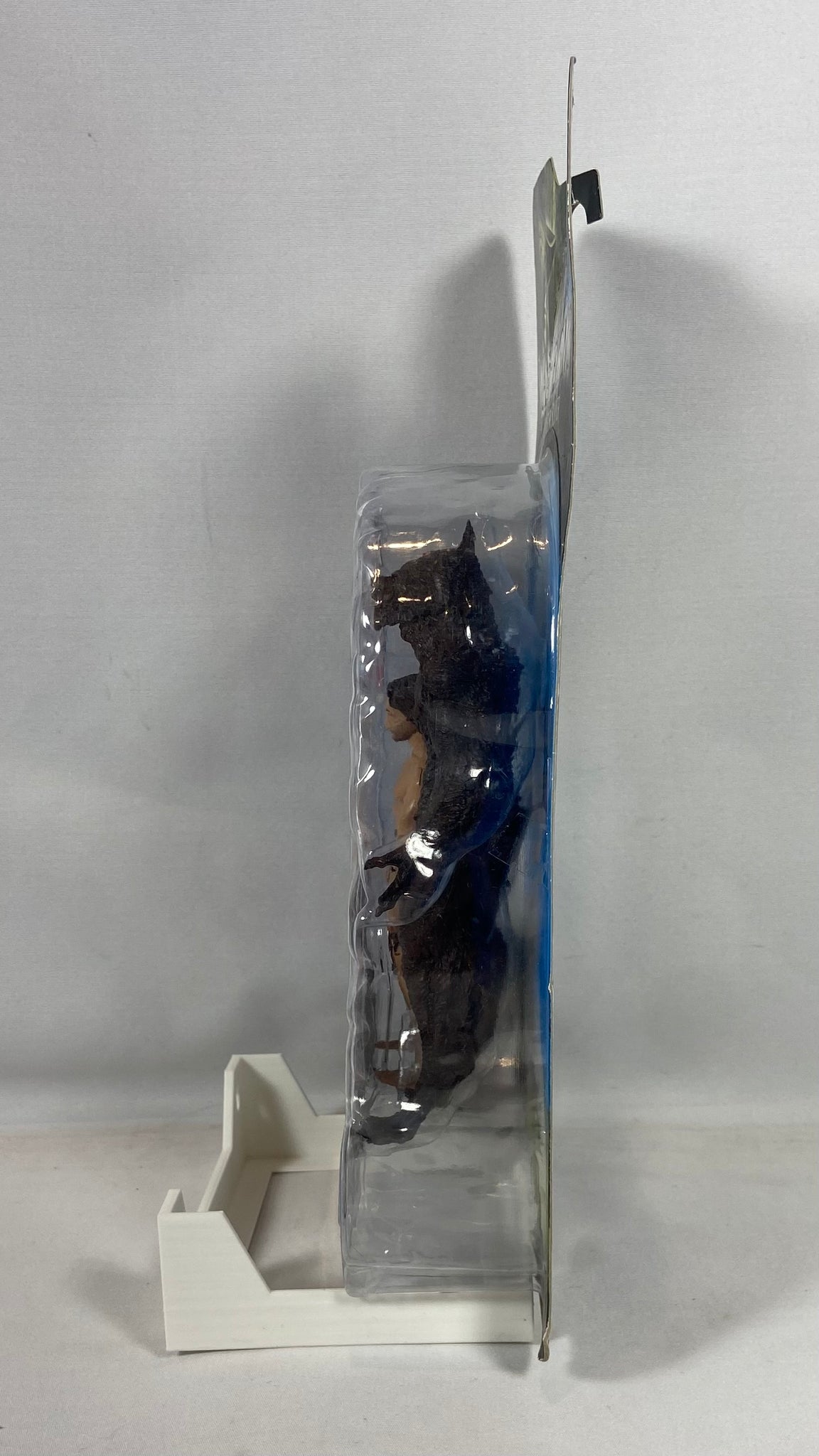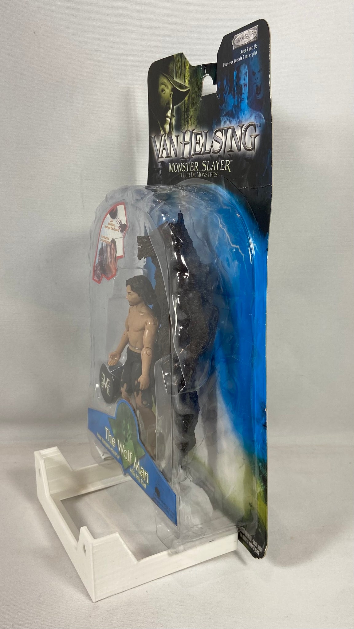 Figurine officielle The Wolf Man tirée du film Van Helsing – Monster Slayer, produite par Jakks Pacific. Ce modèle représente la transformation du personnage en loup-garou, avec figurine humaine incluse et accessoire d’encrage. Un item recherché par les collectionneurs de films fantastiques et de monstres classiques Universal.
