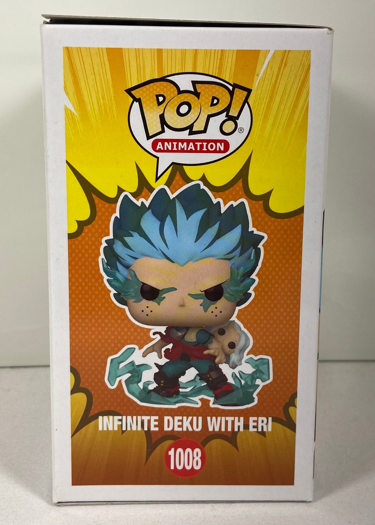 Figurine Funko Pop officielle représentant Infinite Deku avec Eri, issue de la série My Hero Academia. Une version dynamique et très appréciée des collectionneurs, mettant en scène Deku dans sa forme Infinite, accompagné d’Eri.