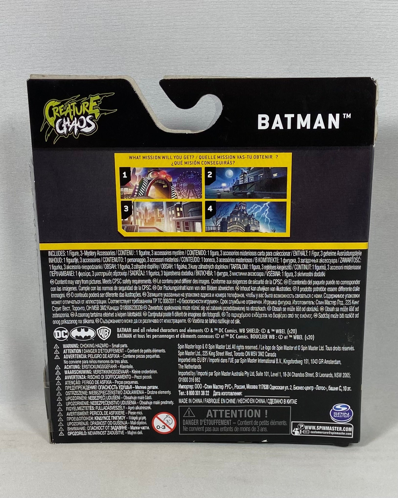 Also available for English customers – Official DC Batman Spin Master figure with mystery accessories. Fast Quebec shipping and secure checkout.