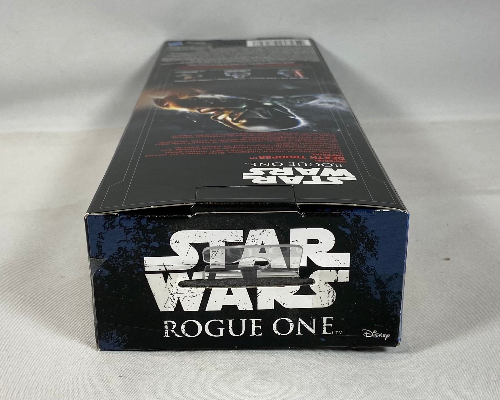 Figurine officielle Imperial Death Trooper tirée du film Star Wars: Rogue One, présentée dans sa boîte d’origine au visuel cinématographique distinctif. Un personnage emblématique de l’Empire, très apprécié des collectionneurs Star Wars.