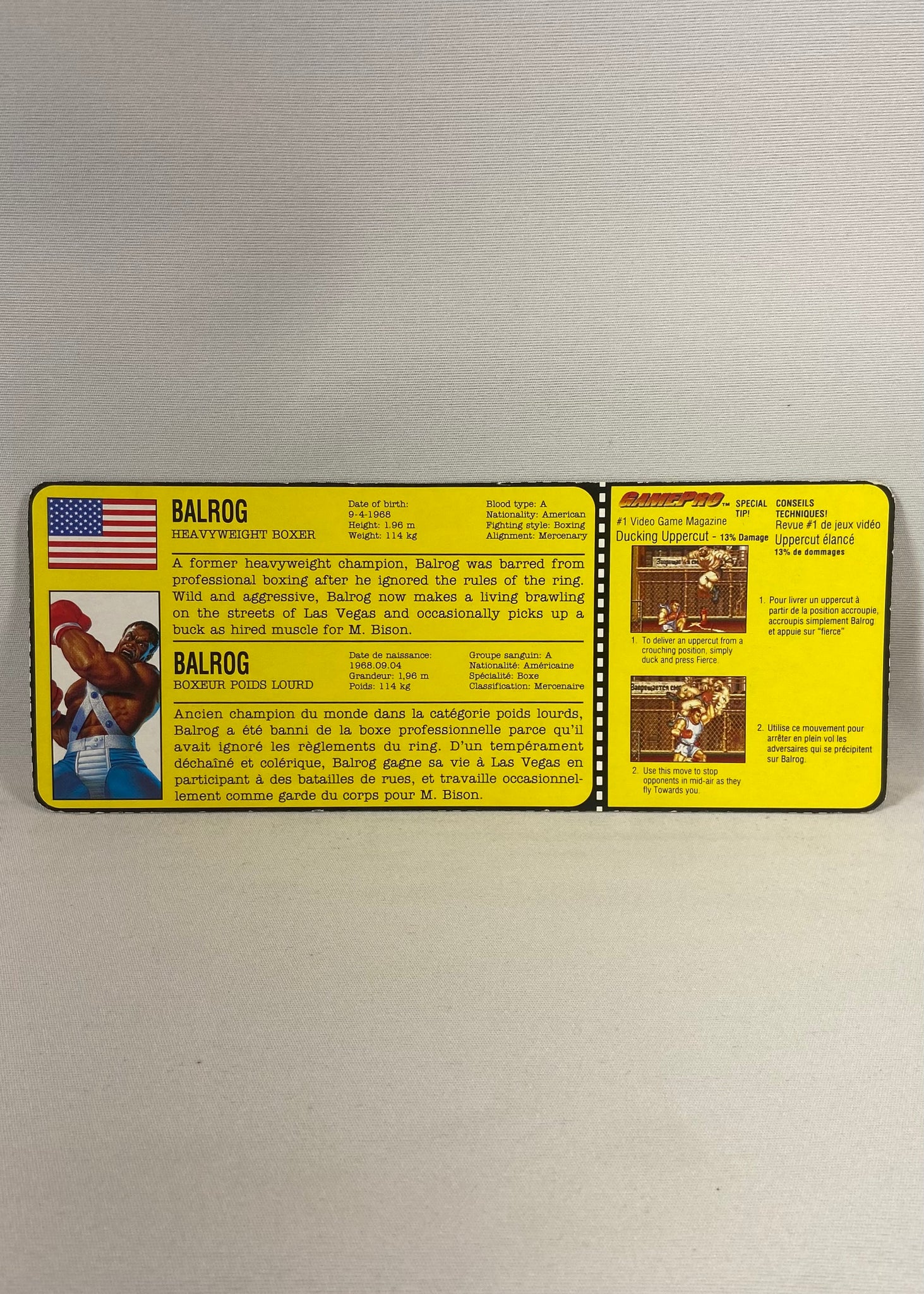 Also available for English customers – Vintage Street Fighter Balrog bilingual cardback for collectors. Fast delivery in Quebec and secure checkout.