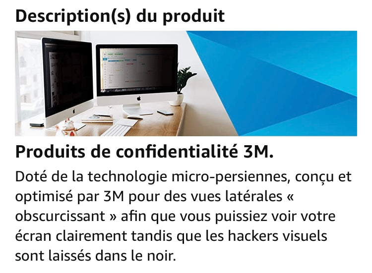 Les filtres de confidentialité noirs 3M pour moniteurs offrent une confidentialité "noire" de classe mondiale à partir des vues latérales, tout en créant une excellente expérience de visualisation haute résolution. Découpé sur mesure pour s'adapter à l'écran de votre appareil et réversible entre un côté brillant et un côté mat antireflet qui aide à réduire les reflets et à masquer les empreintes digitales, afin que vous puissiez profiter d'une clarté d'image irréprochable.