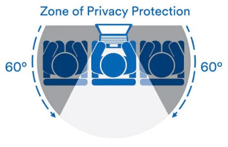 Confidentialité "occultante" efficace des vues latérales en dehors de l'angle de vision de 60 degrés.