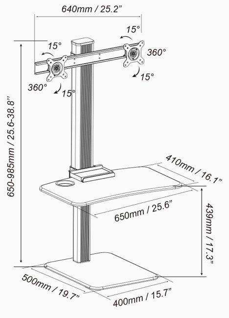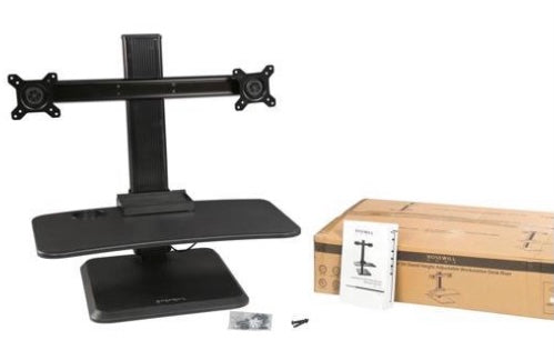 Transformez n'importe quel bureau en un poste de travail assis-debout à deux moniteurs avec le Rosewill RMS-17004. Avec ses deux bras, il peut contenir deux écrans à la fois pour créer une expérience de visionnage étendue tout en aidant à économiser beaucoup d'espace sur le bureau. Chaque bras supporte des écrans de 13" à 24", pesant jusqu'à 11 lb. Le Rosewill RMS-17004 dispose également d'un grand plateau (25,60" x 14,00") pour accueillir votre clavier et votre souris.