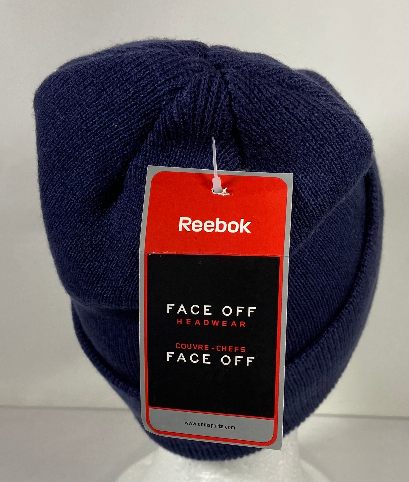 Affichez fièrement vos couleurs avec cette tuque marine officielle des Canadiens de Montréal. Conçue en tricot chaud et extensible, elle assure confort et style pendant tout l’hiver. Son revers épais et son logo brodé du CH à l’avant lui donnent une allure classique et sportive, parfaite pour les partisans du Tricolore.