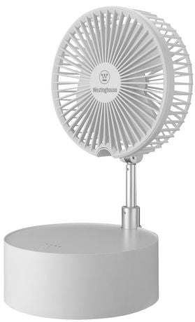 Hauteur et angles réglables ventilateur sur pied multifonctionnel, ventilateur de bureau idéal pour la maison et le bureau 3 réglages de vitesse avec mode naturel voyants à del angle d'inclinaison réglable jusqu'à 180° hauteur de tige réglable (jusqu'à 39” (99 cm)) conception pliable pour un rangement facile batterie rechargeable 4000mah intégrée pour le travail sans fil le travail sans fil pendant 3 à 8 heures dépend de la vitesse différente usb rechargeable câble usb et adaptateur d'alimentation sont inclus